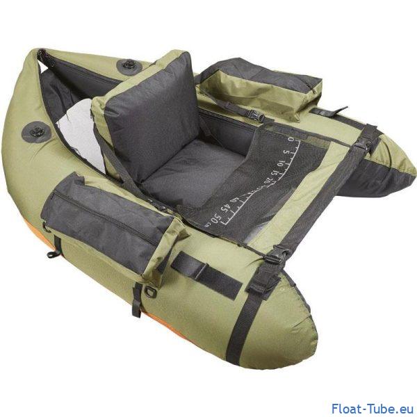 Pratique, il dispose de larges poches latérales pour ranger vos boîtes de leurres et accessoires. Ses 4 anneaux intégrés facilitent l’installation d’un porte-canne Sparrow pour adapter le float tube à vos besoins. Sa couleur olive discrète le rend particulièrement adapté aux plans d’eau où la discrétion est un atout.