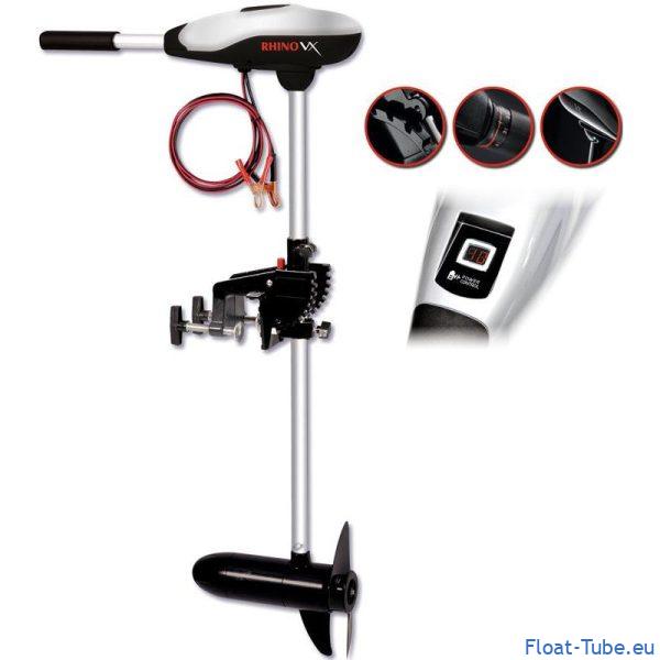 Grâce à une consommation électrique optimisée, les moteurs Rhino VX permettent une autonomie prolongée à capacité de batterie égale, ce qui en fait des moteurs parfaits pour les longues sessions sur l’eau. Le changement de vitesse (5 avant / 2 arrière) se fait par sélecteur et la direction s’effectue via une barre télescopique (sauf modèle VX28).